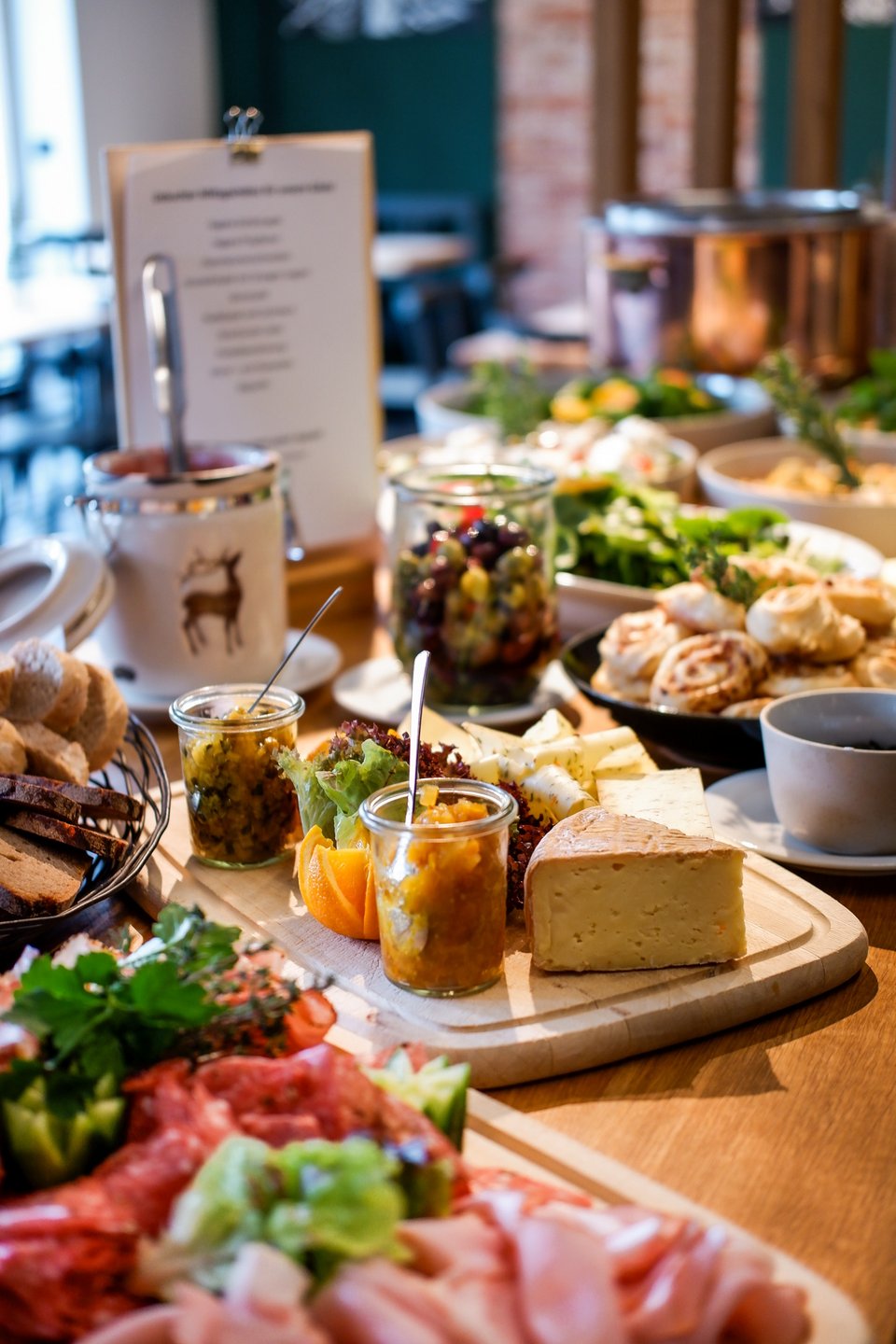 Morgens um acht wird Kaffee gemacht – wir sind ein bisschen früher dran, deshalb wartet das Frühstücksbuffet im Hirschen schon ab 07.00 Uhr auf Dich. Marmeladen aus der Vorratskammer, Wurst und Schinken aus unserer Manufaktur, Käse vom Biohof und, und, und … Wir schätzen die Qualität nicht nur am Morgen. Alle Leckereien gibt es vom Buffet. Gerne auch für externe Gäste für 32,90 € pro Person.